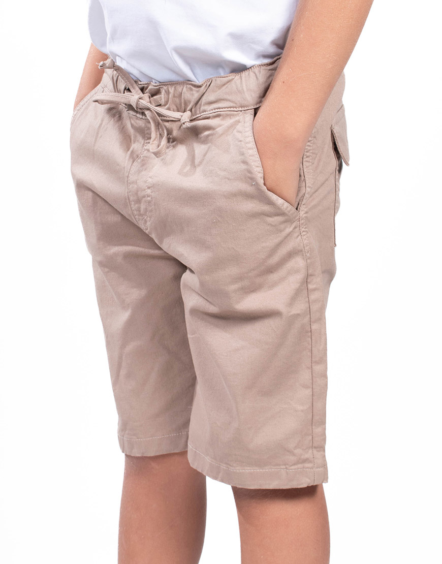 Bermuda de niño confeccionada en drill suave y elástico, ideal para acompañar su día a día ofreciendo la máxima comodidad y total libertad de movimiento.