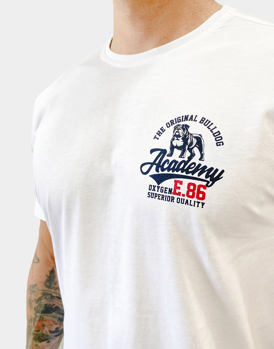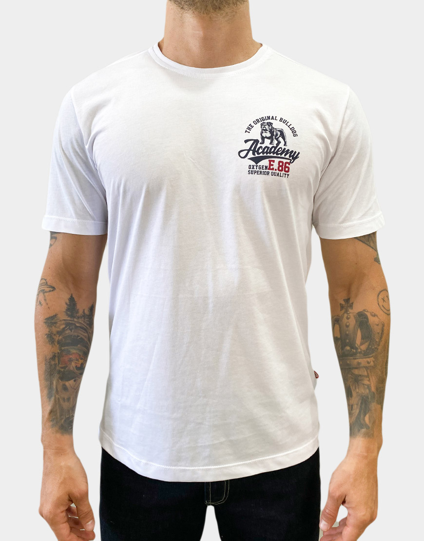 Camiseta para hombre regular fit en 100% algodón, con estampado pequeño y clásico en el frente y diseño gráfico destacado en la espalda. Su estilo atemporal y comodidad la convierten en una prenda versátil ideal para uso diario.