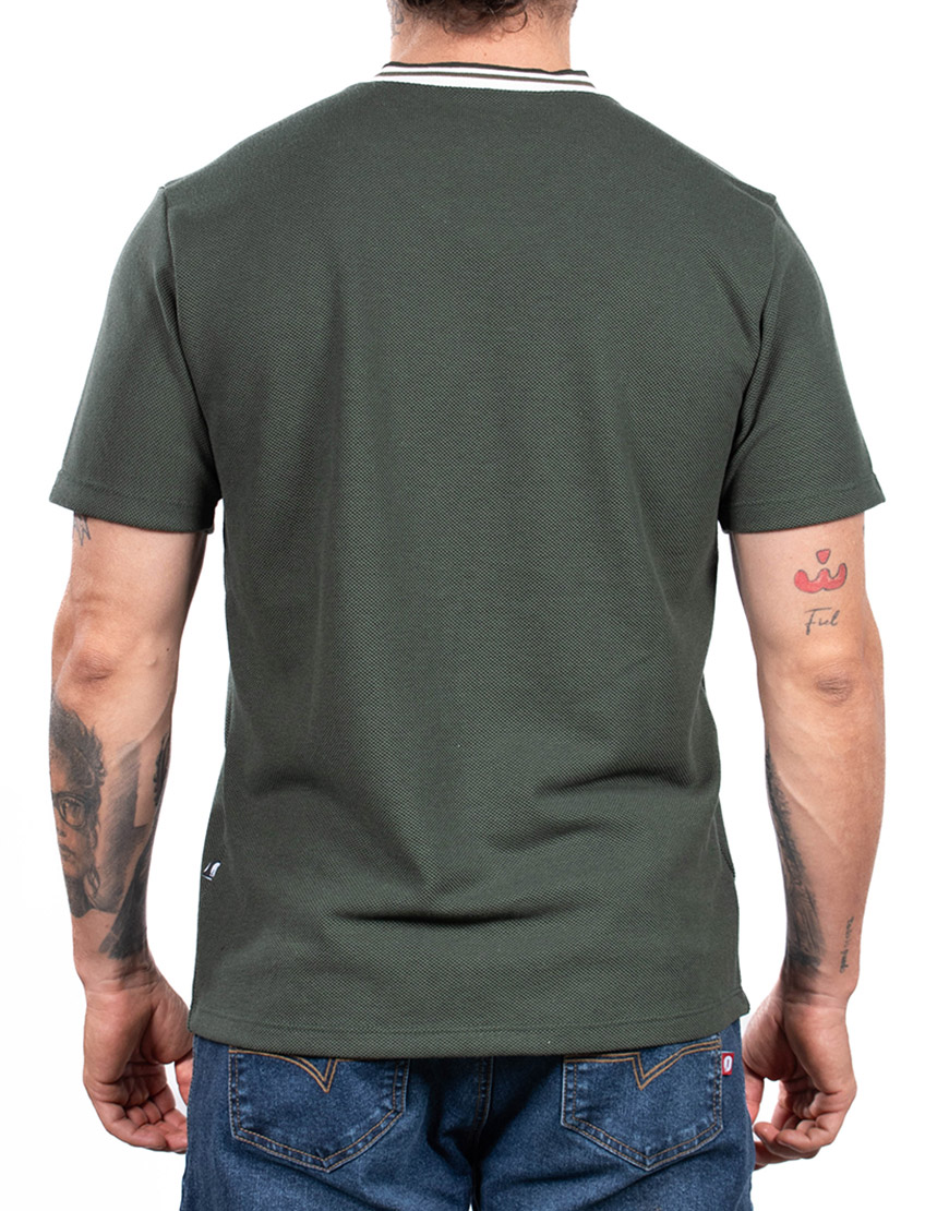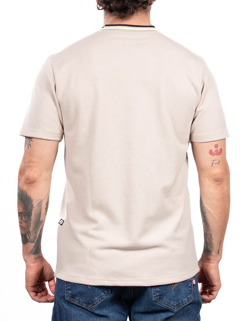 Camiseta de Algodón Texturizado con Cuello Tejido