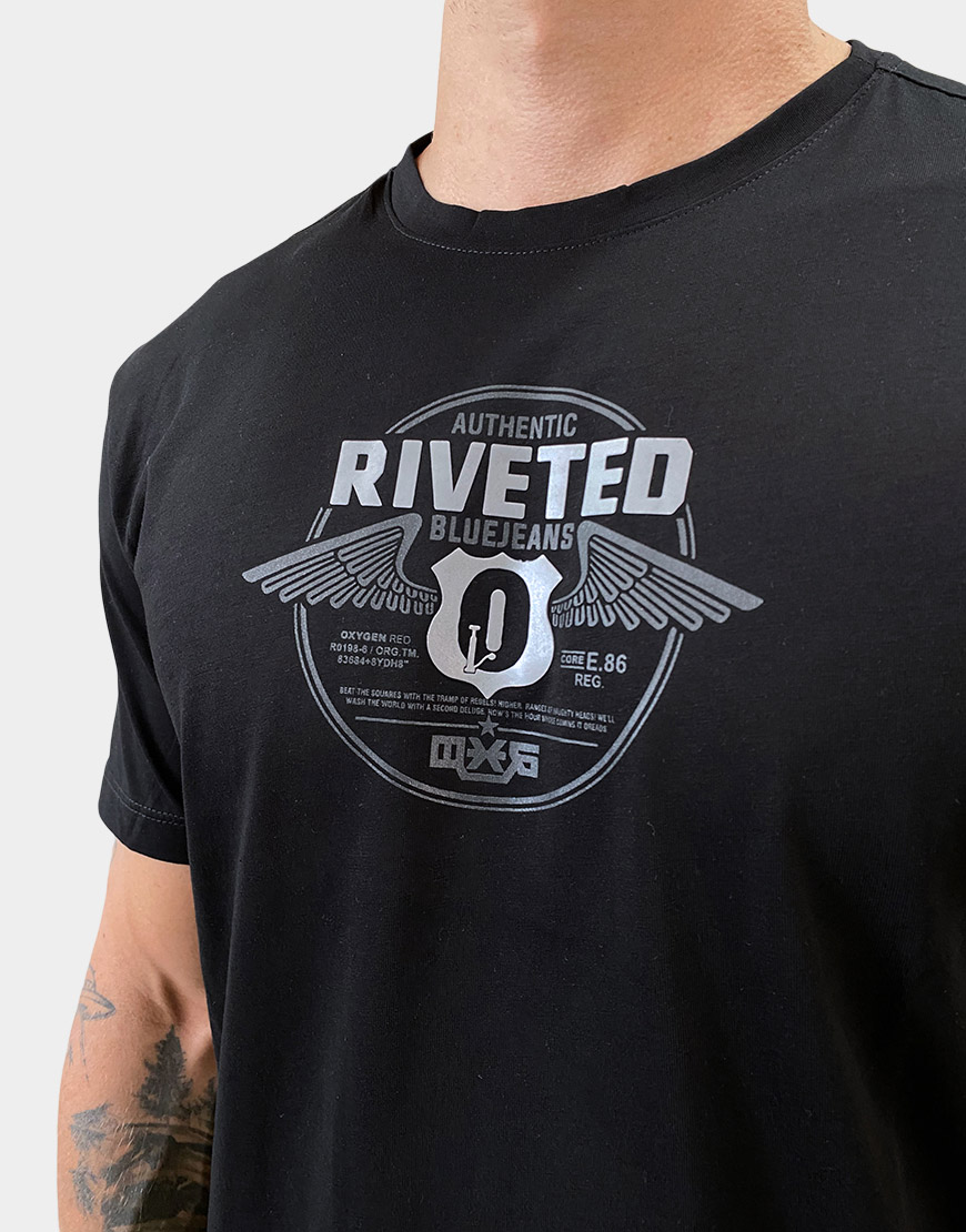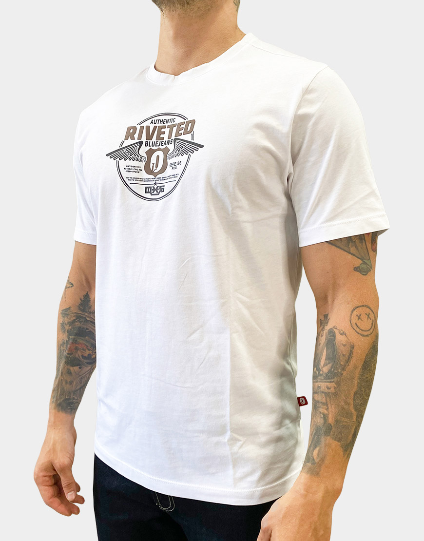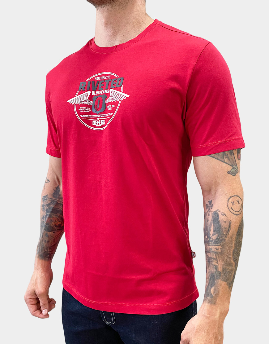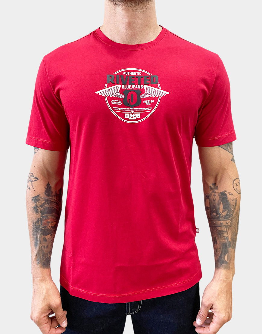 Camiseta para hombre confeccionada en 100% algodón, de corte regular fit y cuello redondo. Estampado frontal en alto relieve con diseño gráfico de estilo urbano, ideal para looks casuales con comodidad y estilo.