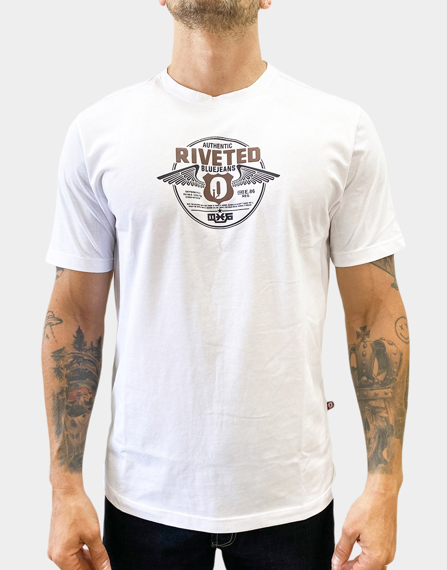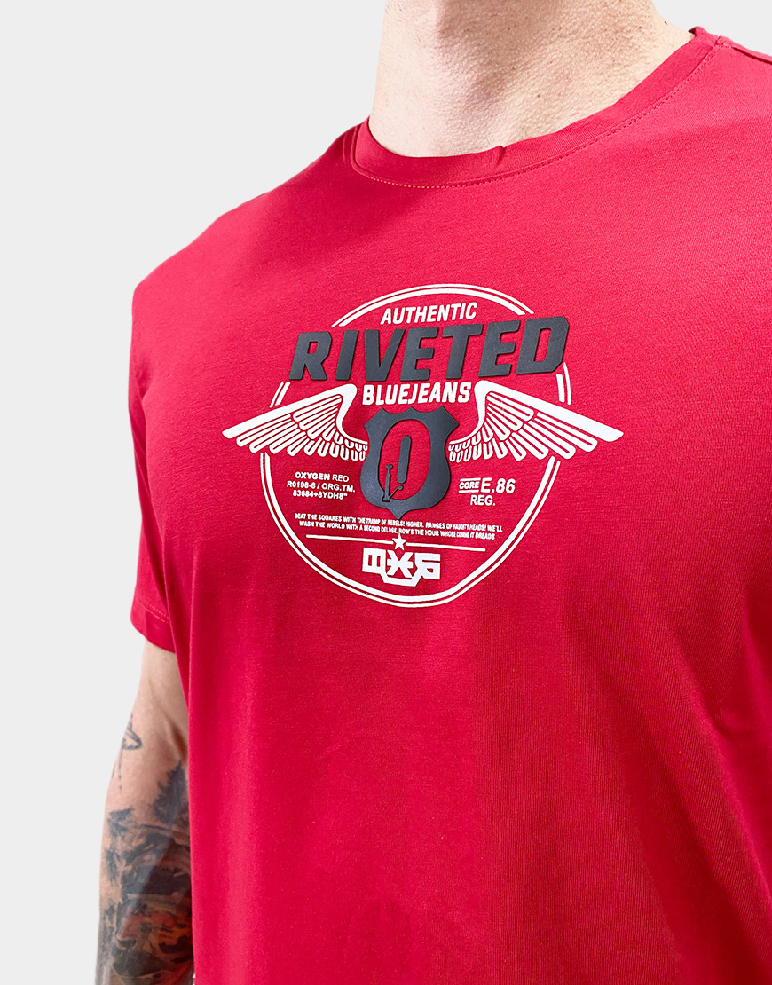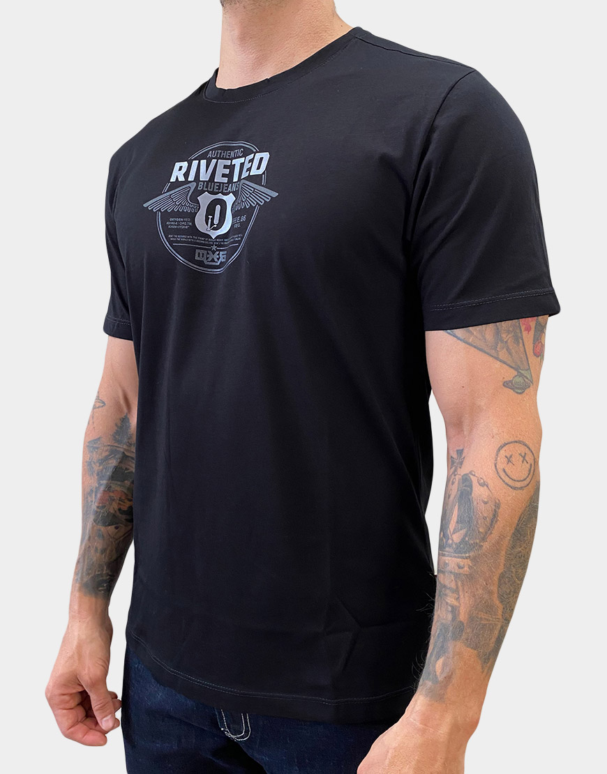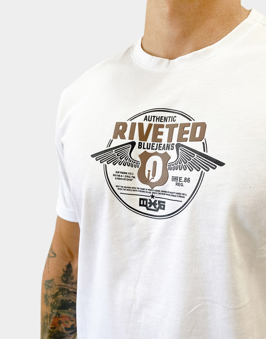Camiseta para hombre confeccionada en 100% algodón, de corte regular fit y cuello redondo. Estampado frontal en alto relieve con diseño gráfico de estilo urbano, ideal para looks casuales con comodidad y estilo.