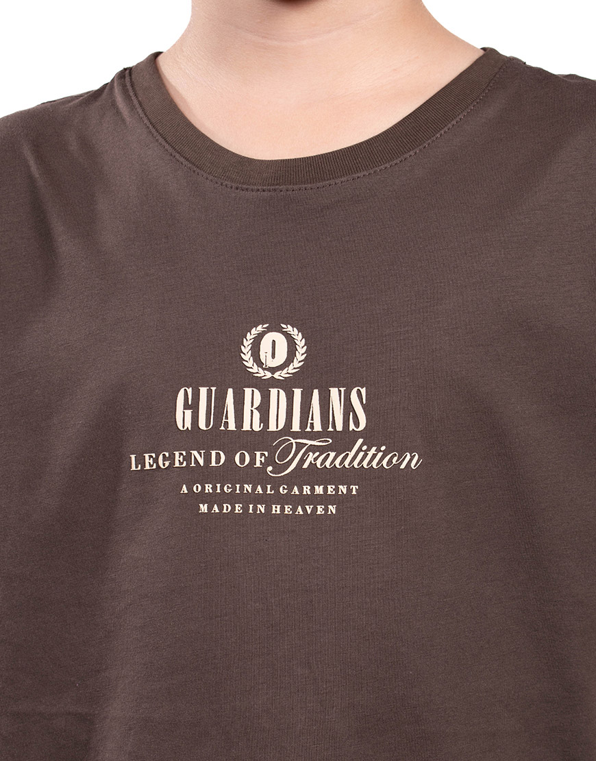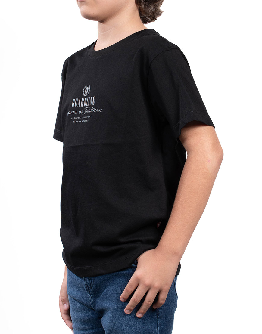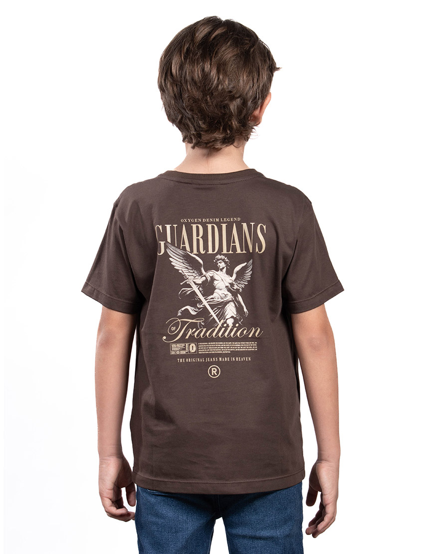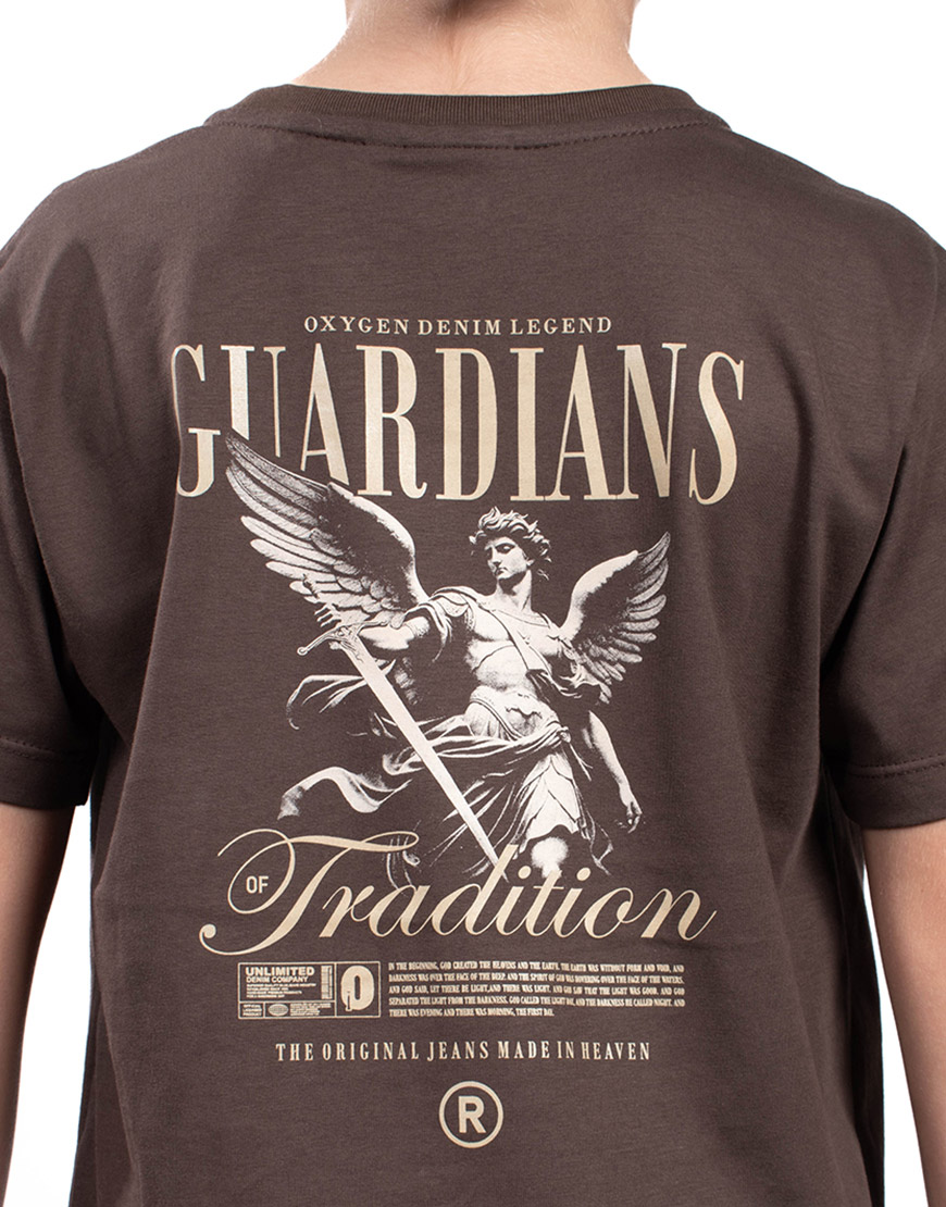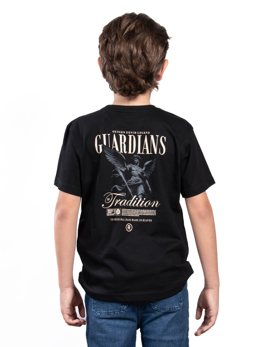 Su diseño es audaz gracias a un doble estampado gráfico: un sutil logo frontal en relieve discreto, y un impactante estampado trasero de gran formato con una poderosa temática de ángel/guardián y tipografía vintage.