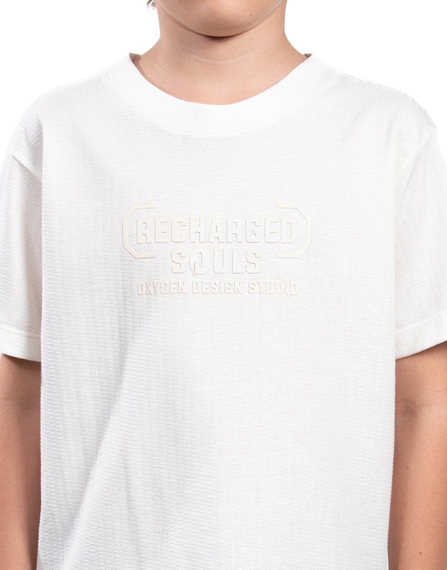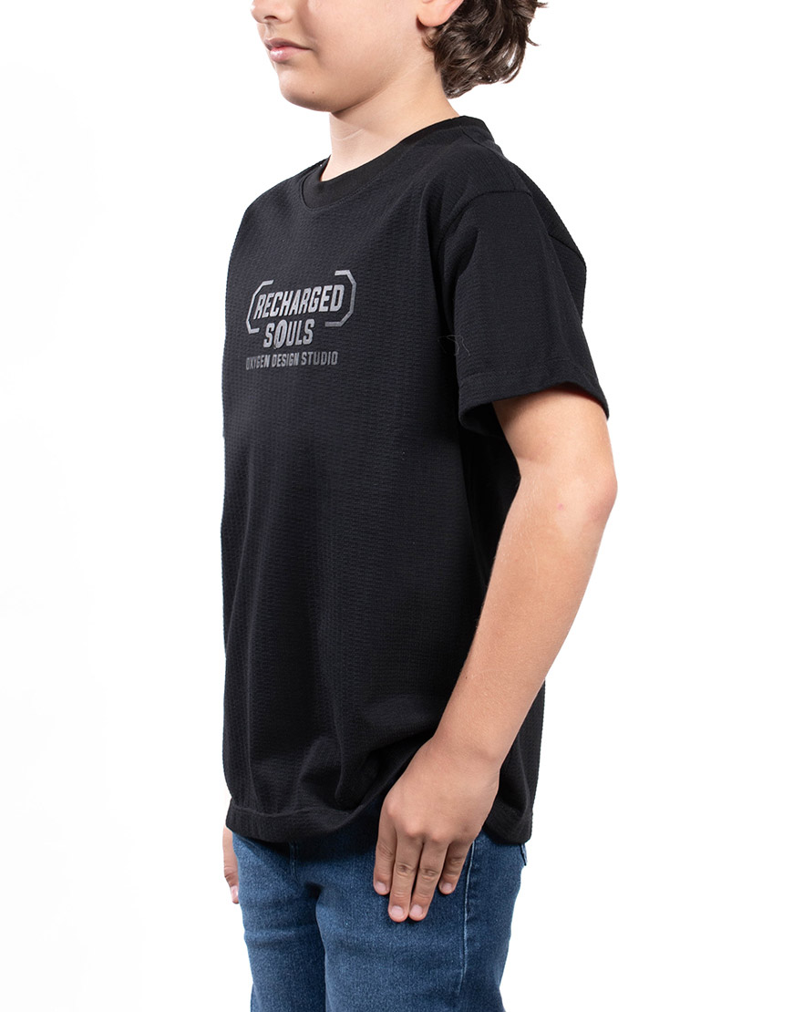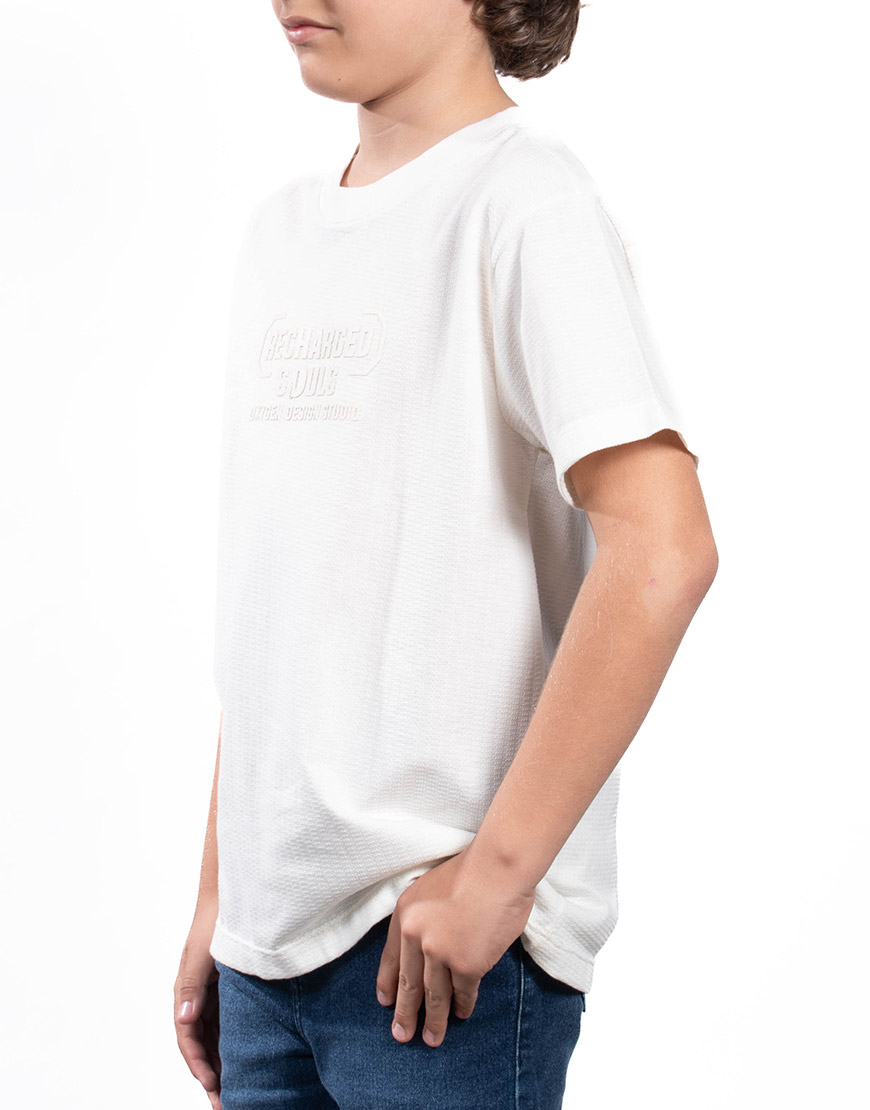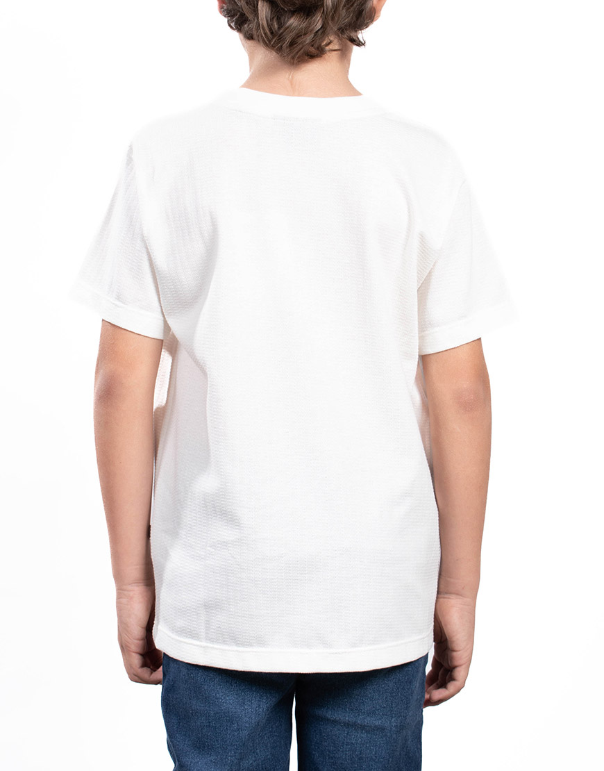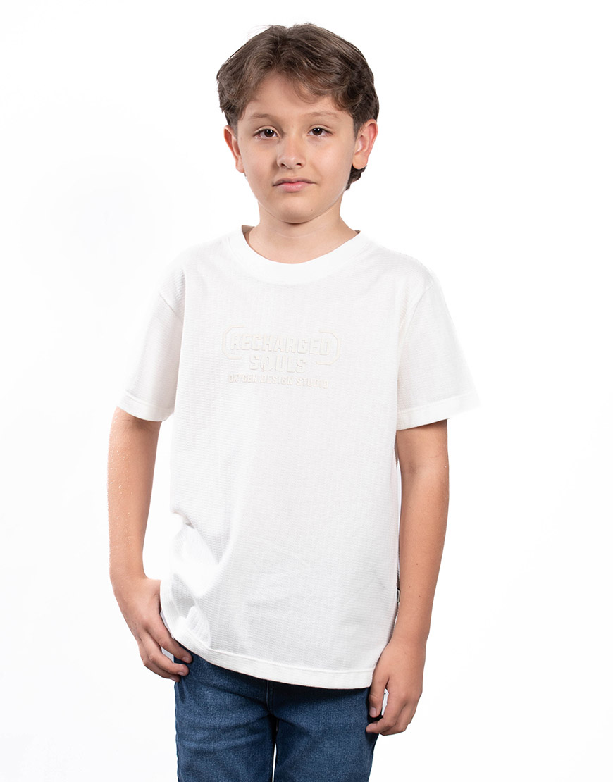 Renueva el estilo de tu hijo con la Camiseta de Niño en Algodón con Estampado en Relieve. Confeccionada en algodón suave y fresco de corte regular y cuello redondo, es ideal para el uso diario y garantiza la máxima comodidad.