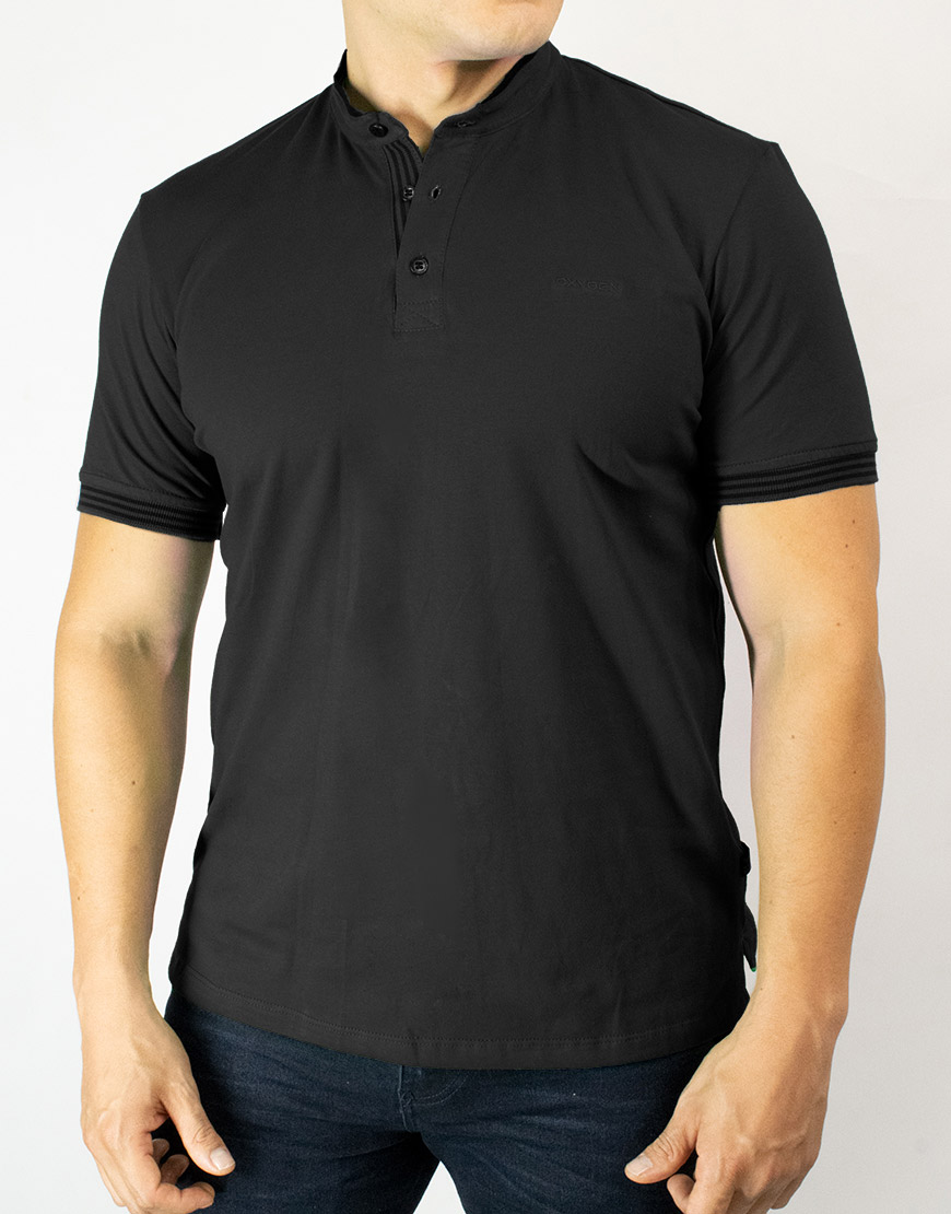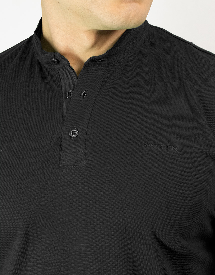 Polo para hombre confeccionada en tejido suave, diseño con cuello tipo nerú y cierre parcial con botonadura, puños tejidos que mejoran el ajuste, bordado clásico en pecho y silueta regular que aporta comodidad y apariencia limpia.