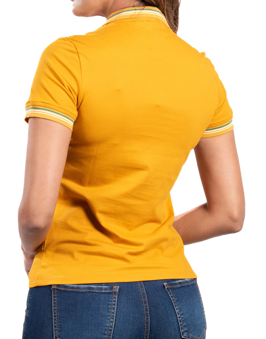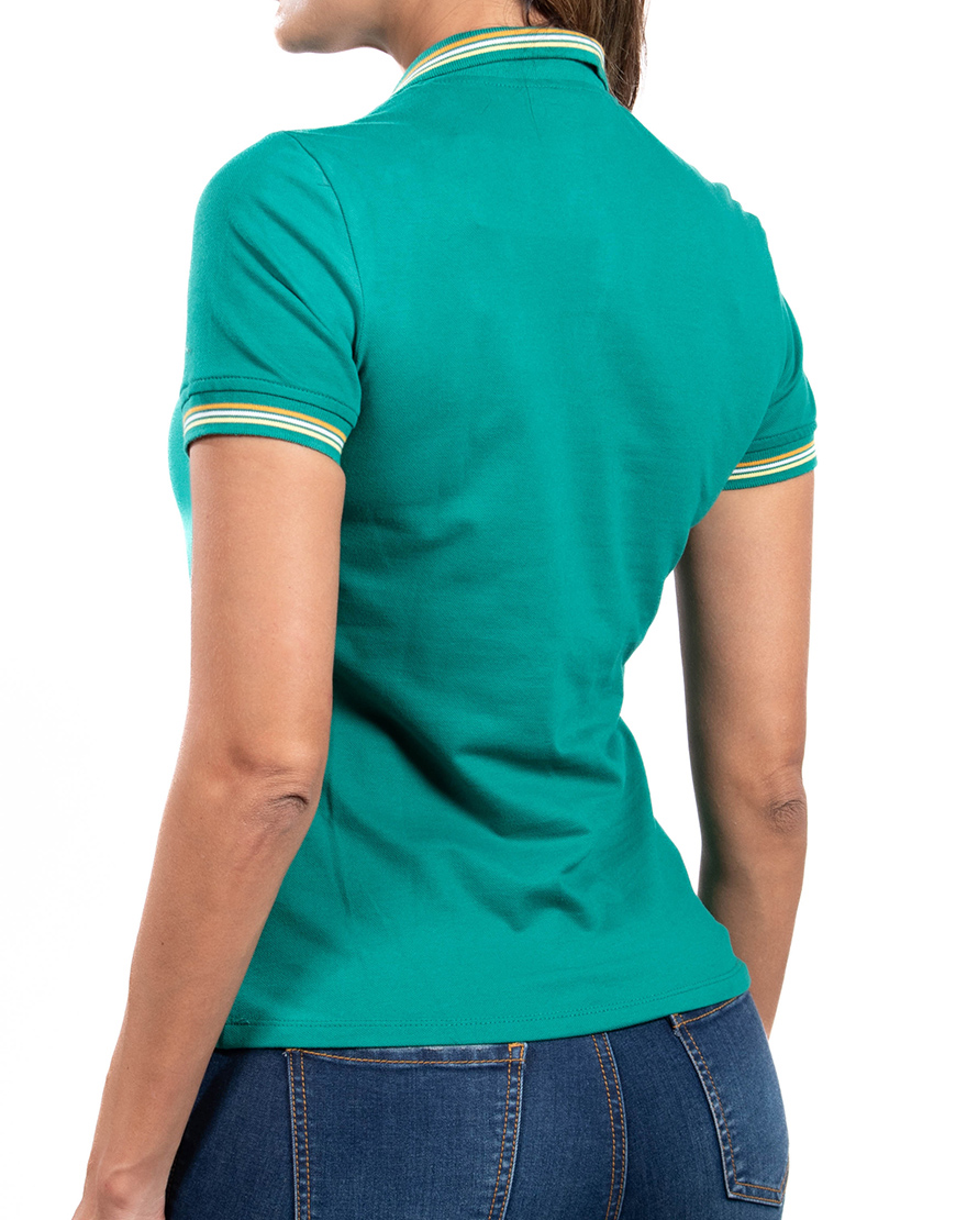 Camiseta polo de dama clásica con silueta Regular Fit, que proporciona un calce cómodo y favorecedor para el uso diario. Confeccionada en piqué de algodón de alta calidad, es la opción ideal para mantener la frescura y comodidad.