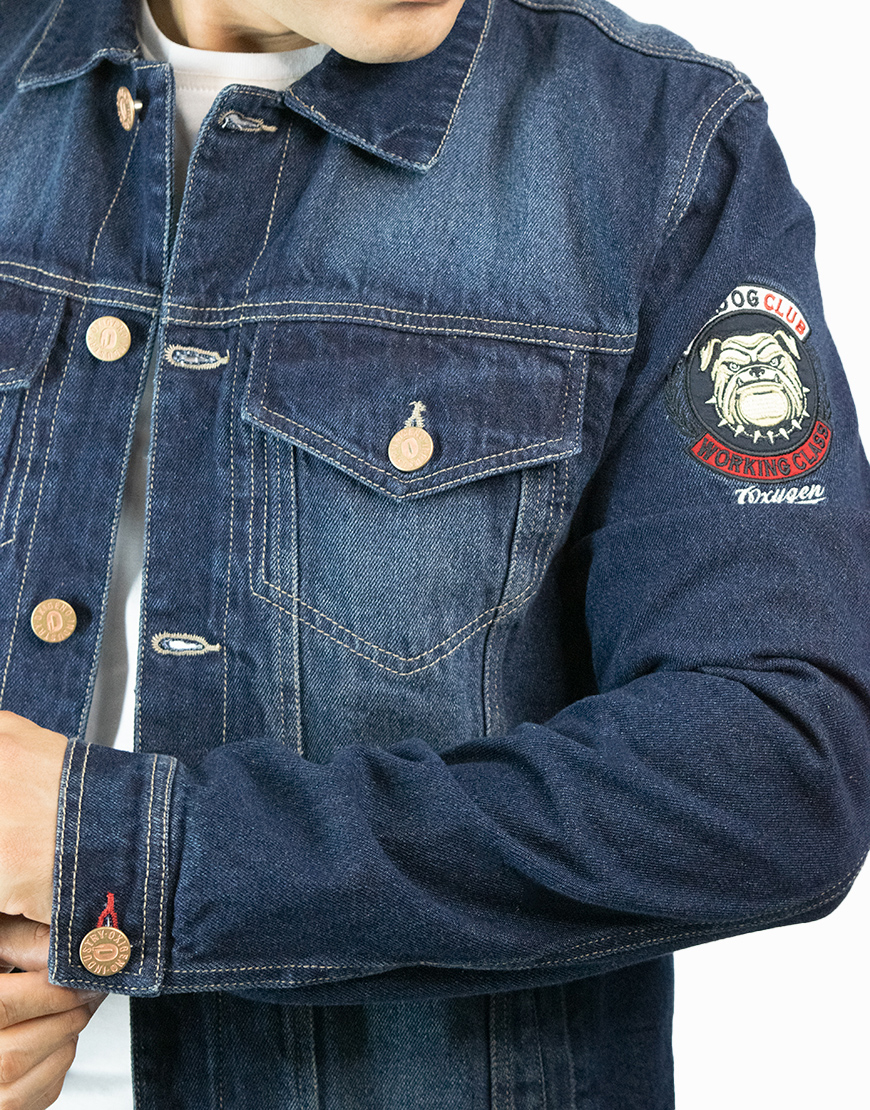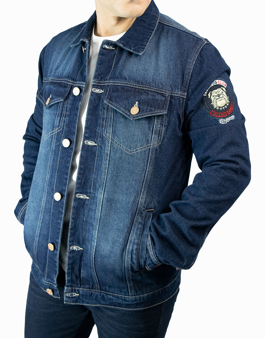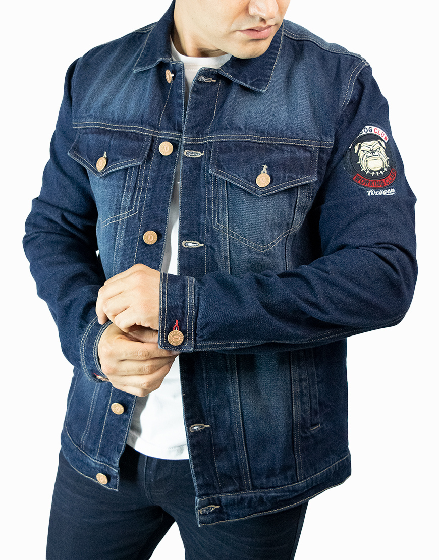 Chaqueta clásica de denim rígido y de corte atemporal, diseñada para un estilo robusto, masculino y con auténtico carácter. Confeccionada en tela denim de alta durabilidad con un acabado en color (como el azul oscuro) y sutiles desgastes que le confieren personalidad (dependiendo de la variante).