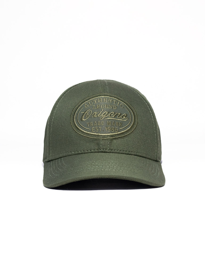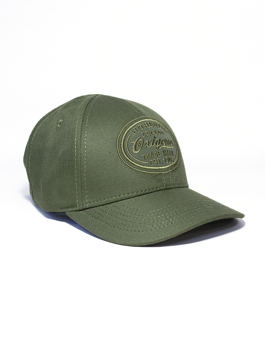 Gorra Oxígeno con bordado al tono y gráfico clásico, confeccionada en 5 cascos sin botón para máxima comodidad, ajuste en velcro y detalle de bandera en la parte trasera, perfecta para un estilo fresco, versátil y auténtico.