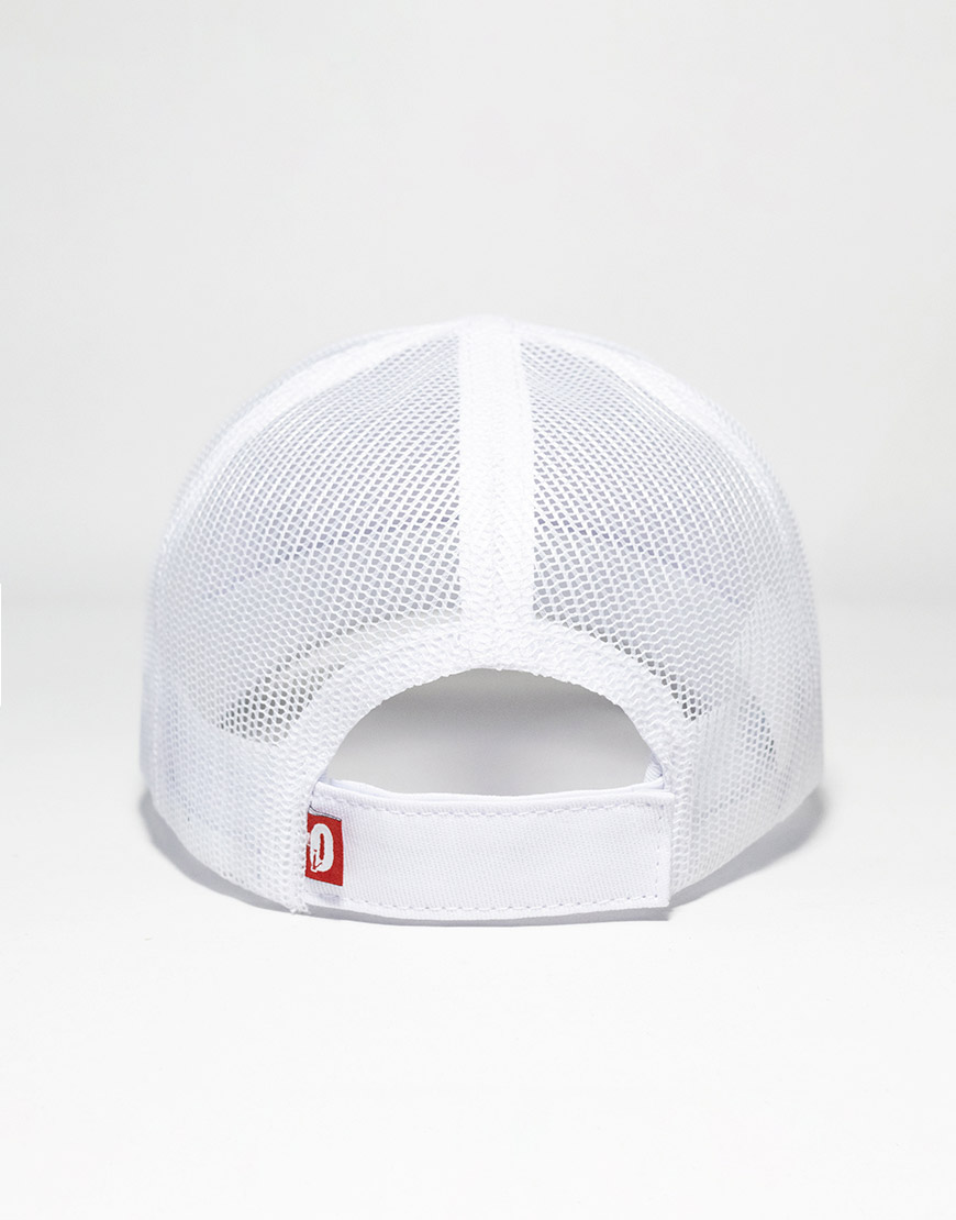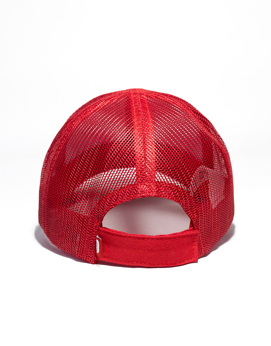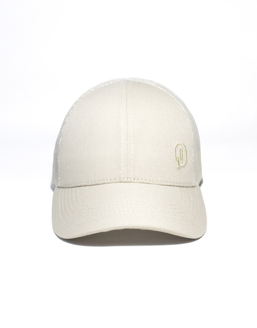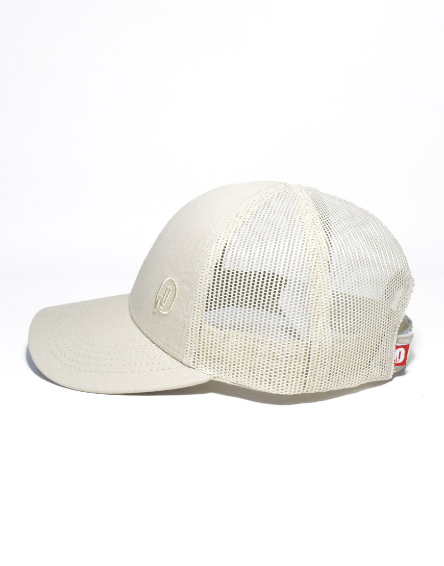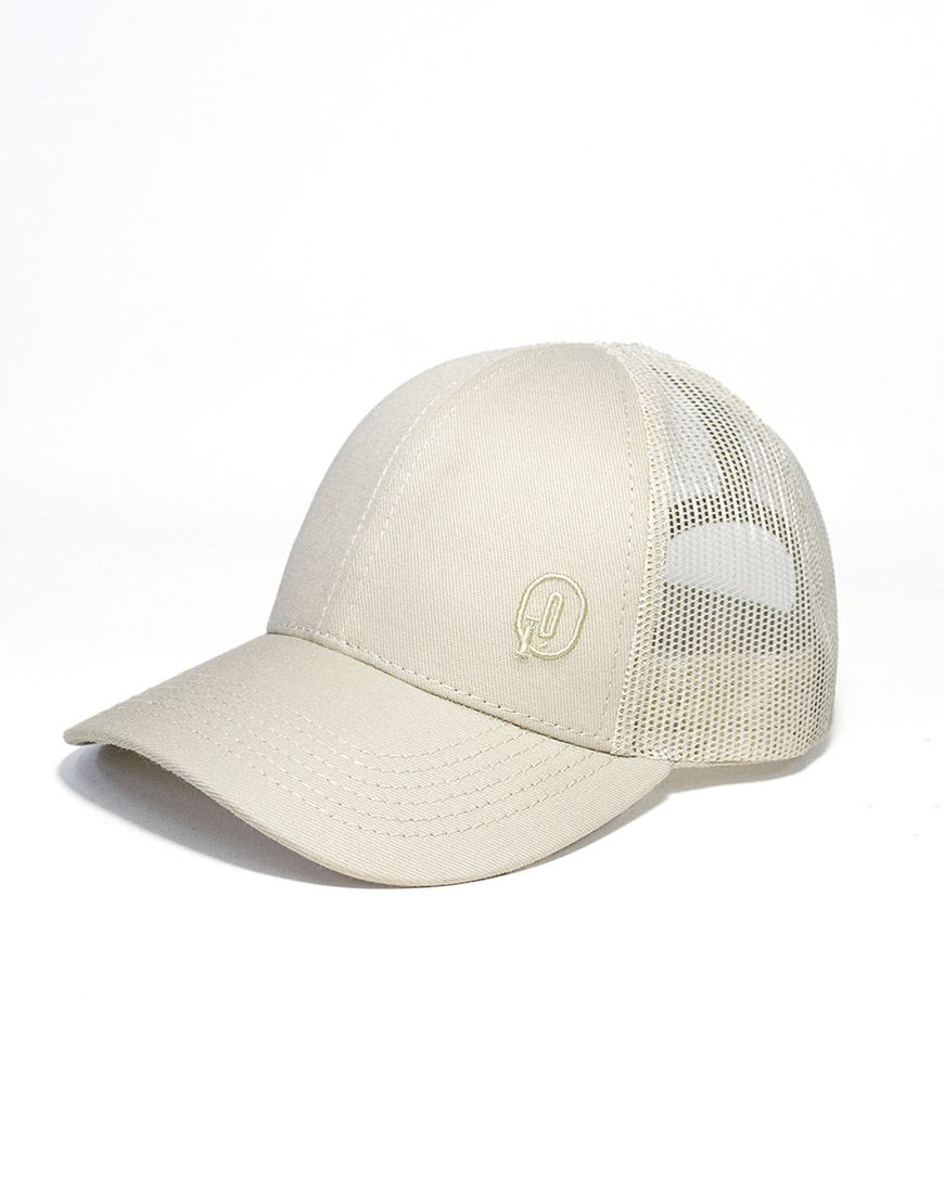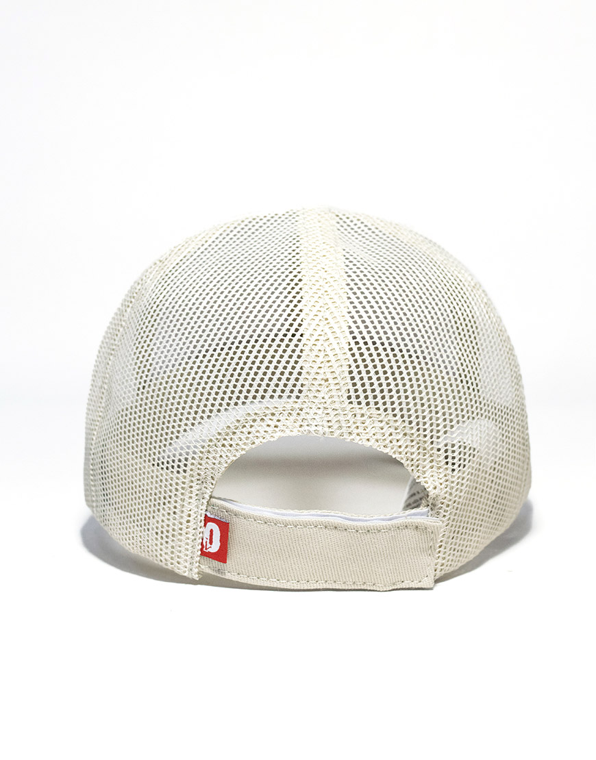 Gorra tipo camionero unisex en color beige, confeccionada en algodón de alta resistencia con paneles en malla para mayor frescura y comodidad. Cuenta con visera curva, bordado frontal tono a tono, bandera clásica en la parte trasera y cierre en velcro para un ajuste personalizado. Un accesorio ligero y versátil, ideal para complementar tus looks urbanos y casuales.
