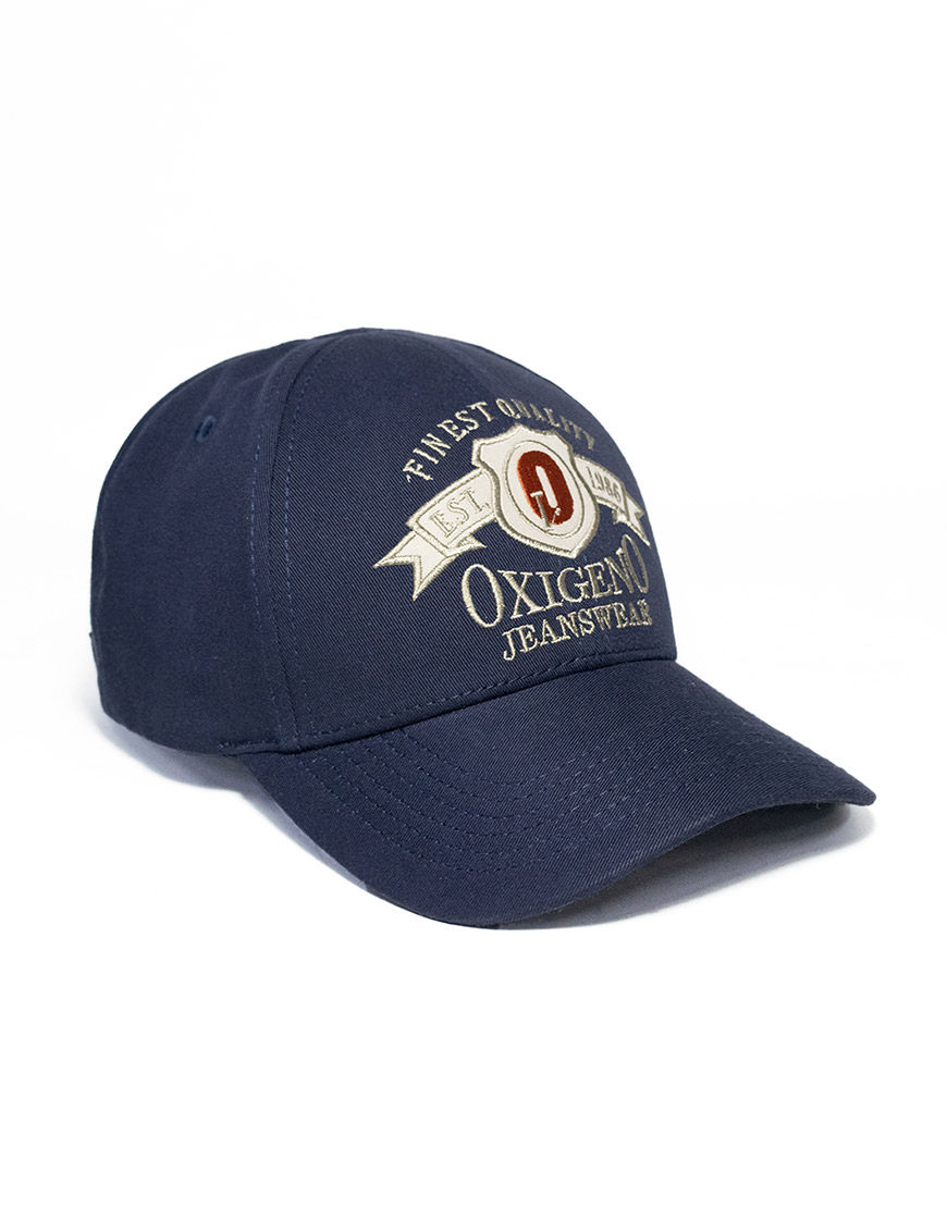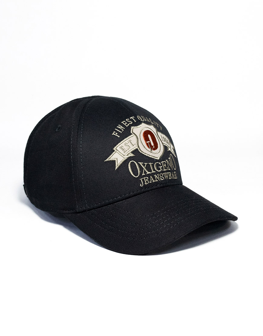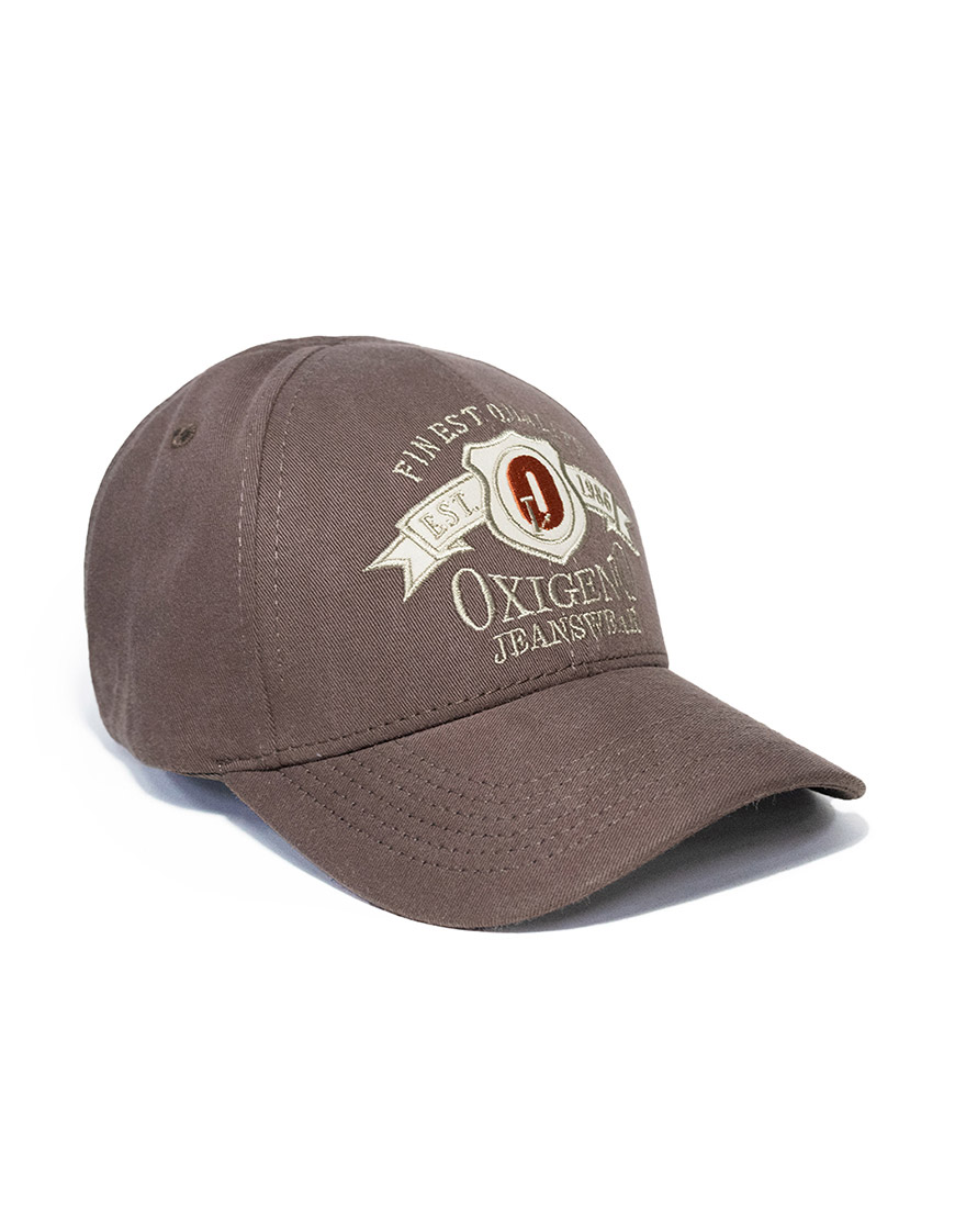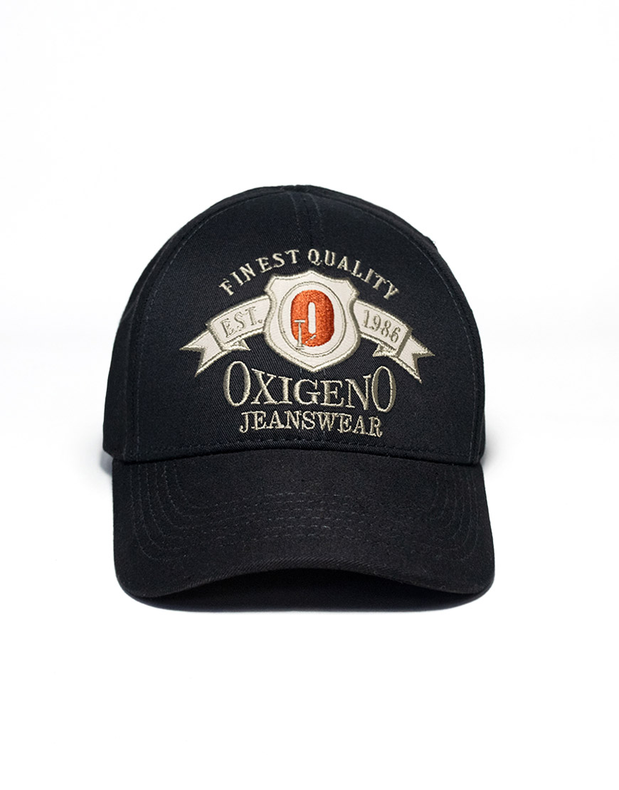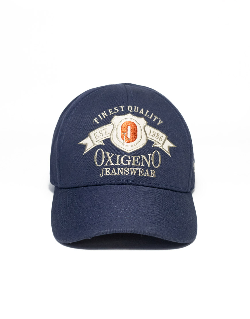 Gorra unisex confeccionada en algodón de alta resistencia, con diseño de 6 cascos y bordado frontal exclusivo “Oxígeno Jeanswear” acompañado de detalle lateral estampado. Incorpora visera curva y cierre trasero en velcro para un ajuste cómodo y práctico. Un accesorio versátil y moderno, ideal para complementar looks urbanos y casuales.