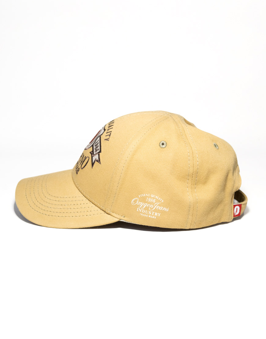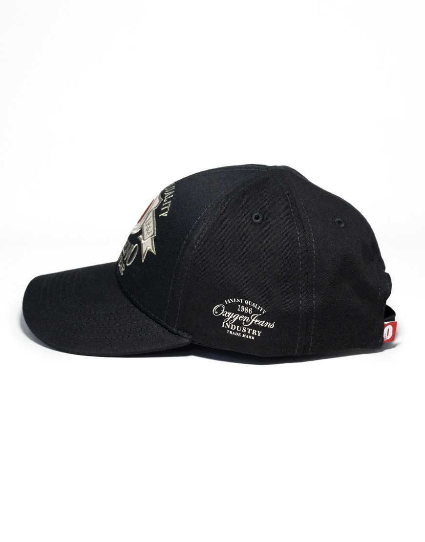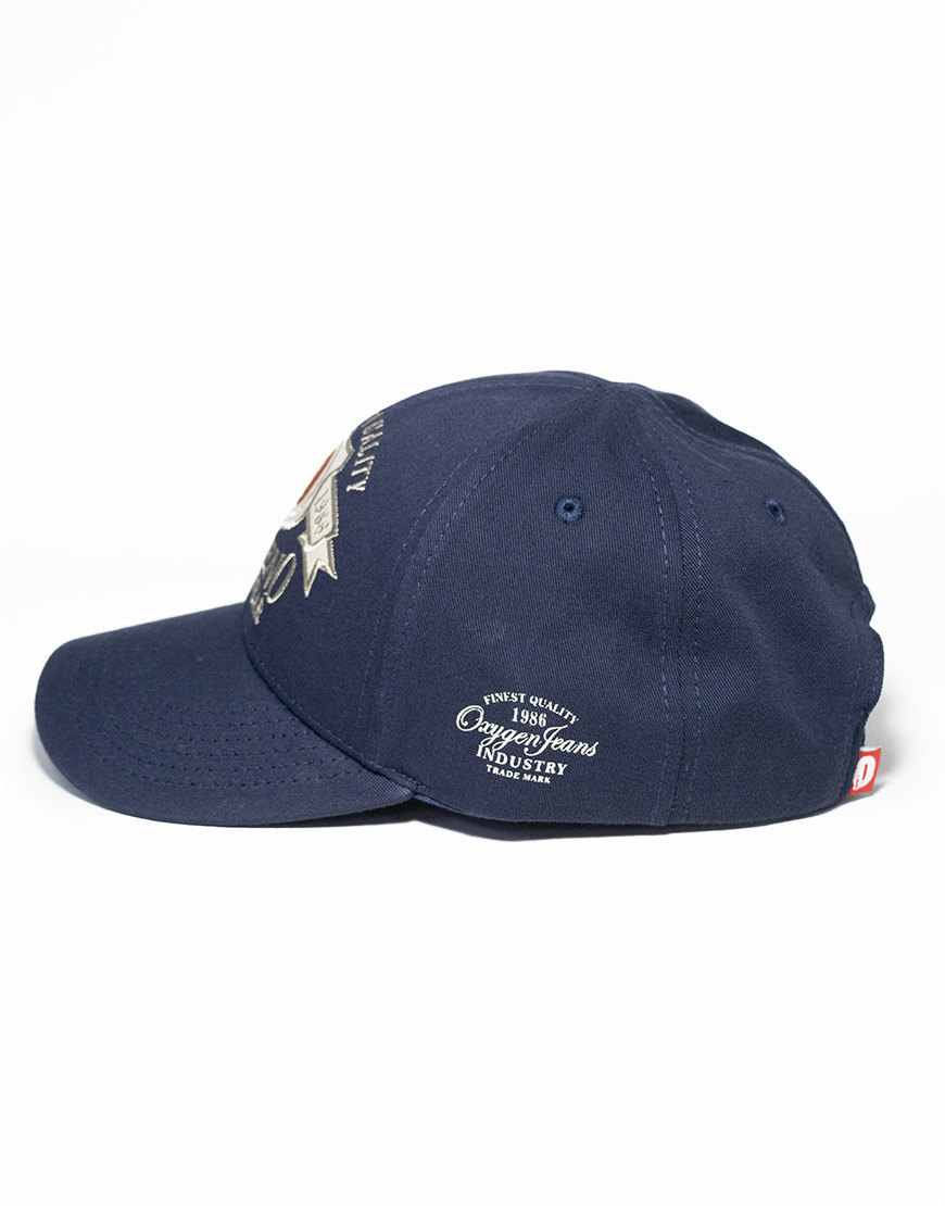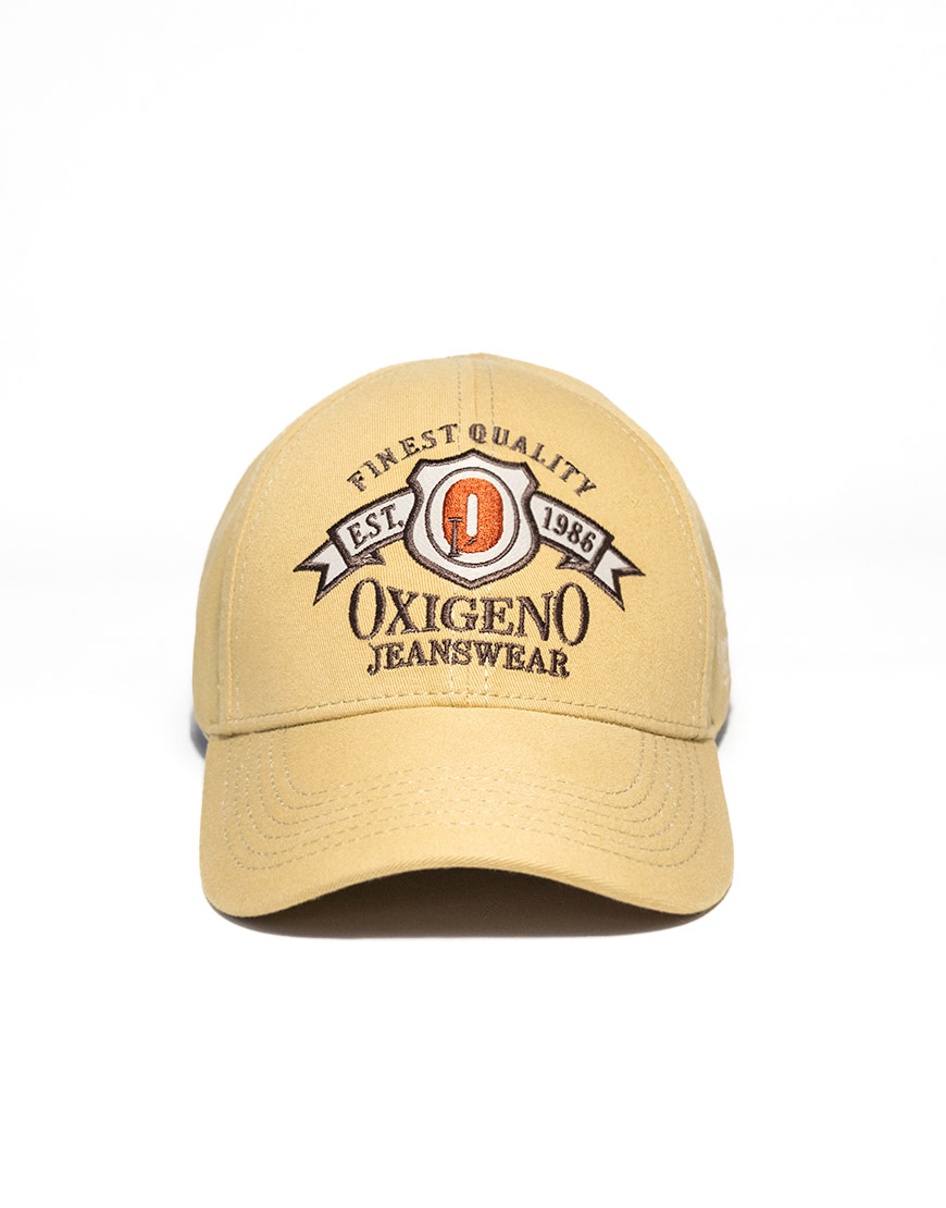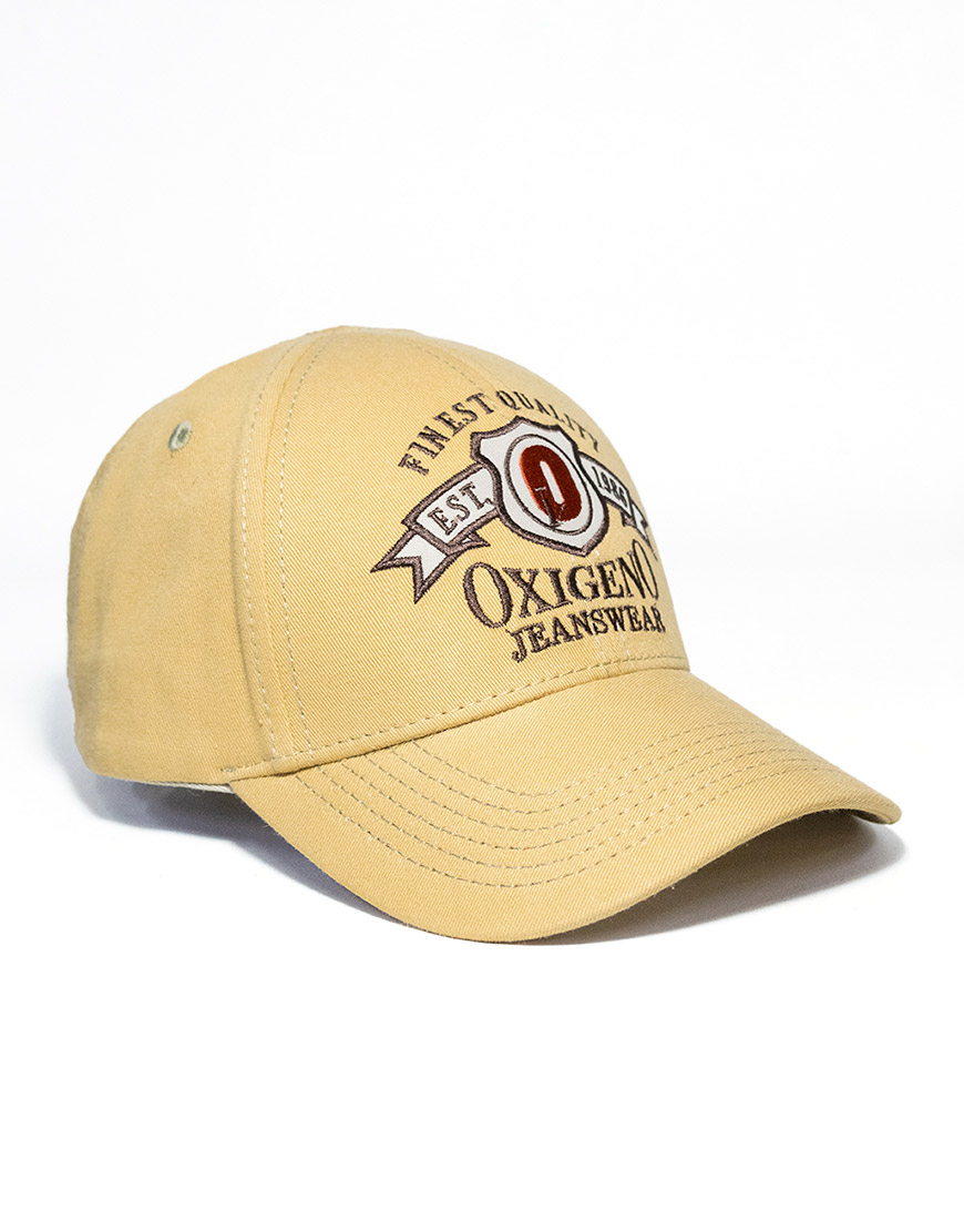 Gorra unisex confeccionada en algodón de alta resistencia, con diseño de 6 cascos y bordado frontal exclusivo “Oxígeno Jeanswear” acompañado de detalle lateral estampado. Incorpora visera curva y cierre trasero en velcro para un ajuste cómodo y práctico. Un accesorio versátil y moderno, ideal para complementar looks urbanos y casuales.