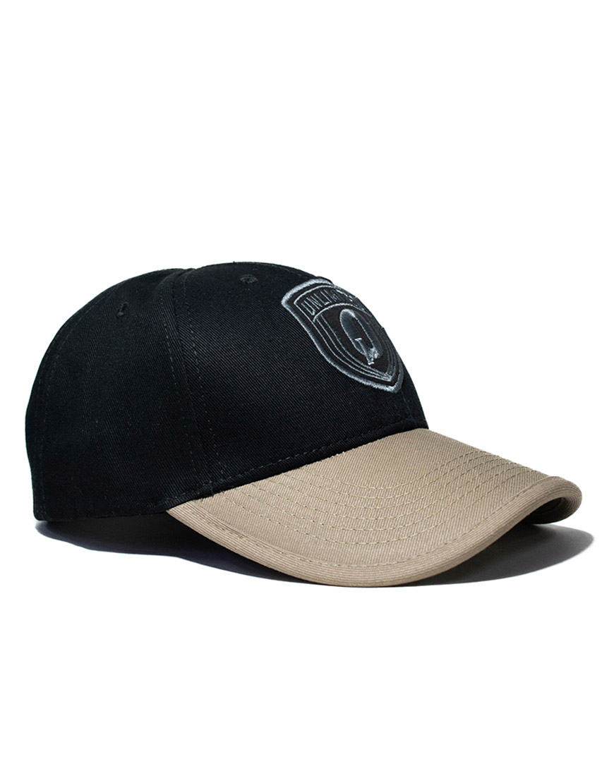 Gorra de estilo clásico confeccionada en tejido de algodón de alta densidad con estructura de seis cascos y visera curva reforzada. El diseño destaca por su imponente escudo frontal bordado en relieve y un detallado estampado técnico lateral; incorpora un elegante sesgo en contraste en el borde de la visera, ojetes bordados para una ventilación constante y un práctico sistema de cierre ajustable en velcro, consolidándose como un accesorio de alta durabilidad y estilo urbano sofisticado.