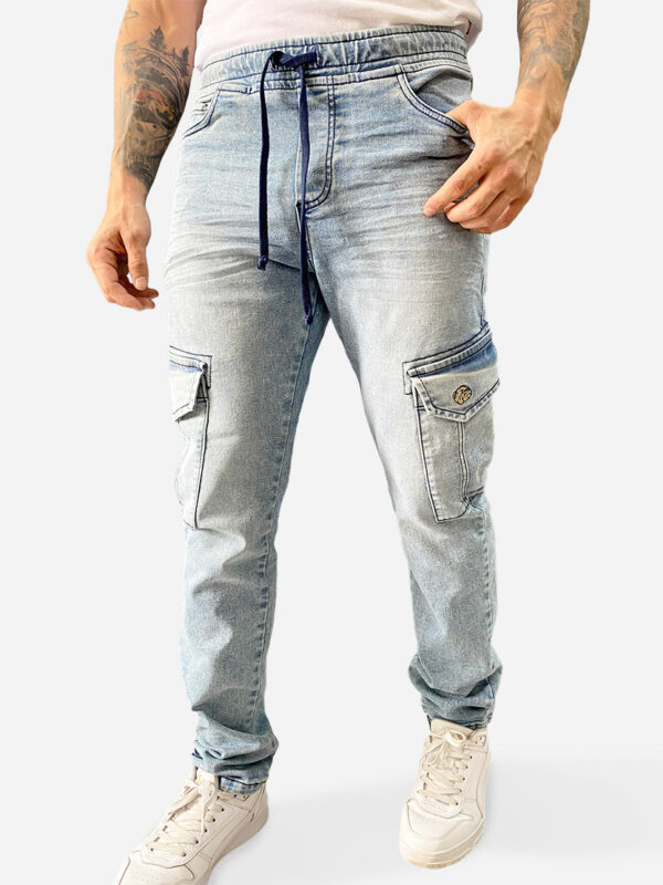 Pantallón tipo jean de silueta slim fit, confeccionado en denim elástico de alta recuperación que garantiza un ajuste preciso y comodidad durante todo el día. Presenta un lavado en tono azul hielo con procesos de desgaste localizados y sutiles matices claros que aportan un aspecto moderno y dinámico. Su diseño clásico de cinco bolsillos incluye costuras reforzadas, cierre frontal metálico y una construcción ergonómica ideal para un estilo urbano contemporáneo.