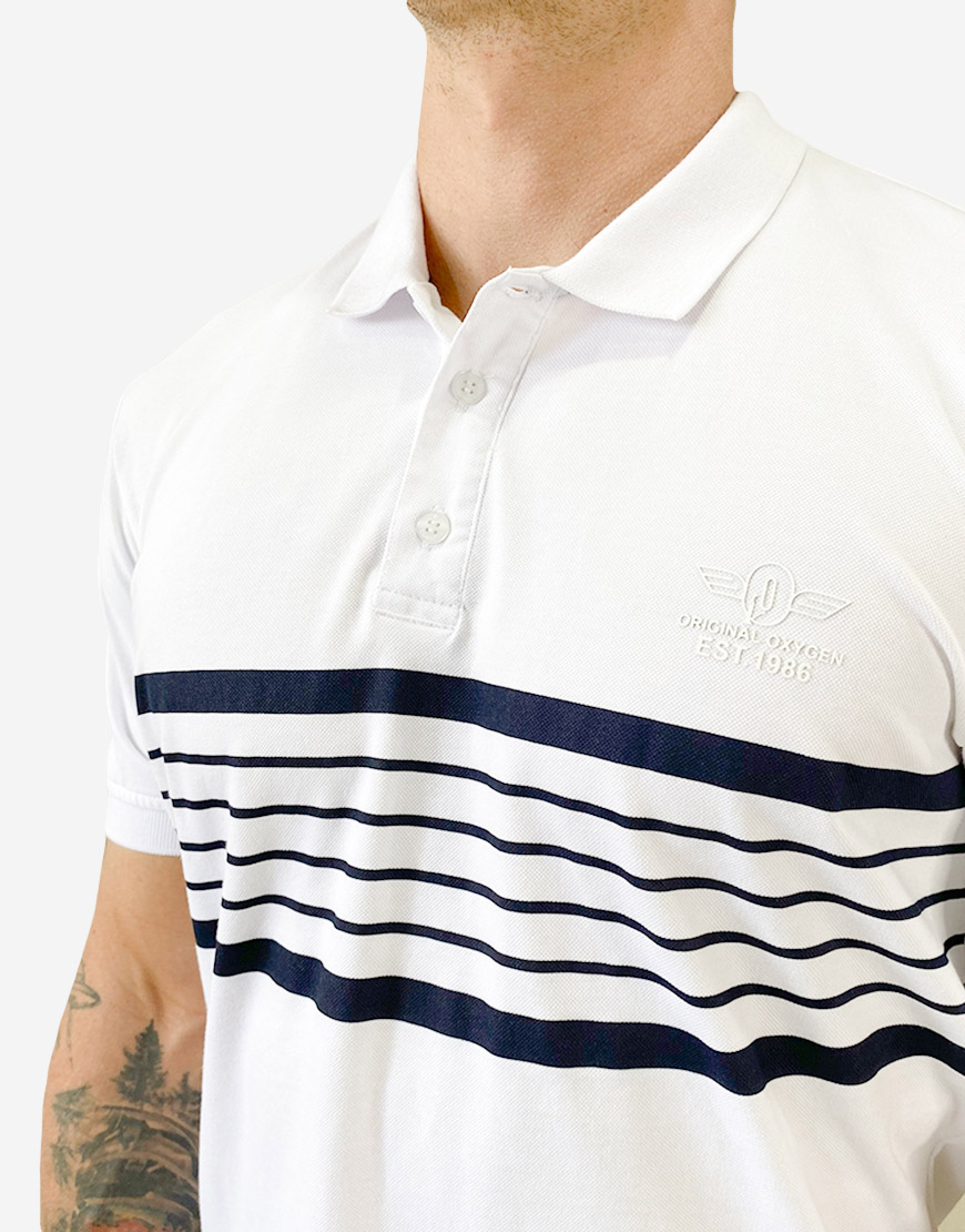 Este polo de corte Regular Fit es cómodo y versátil, ideal para un estilo casual distintivo con el toque clásico del logo Oxígeno.